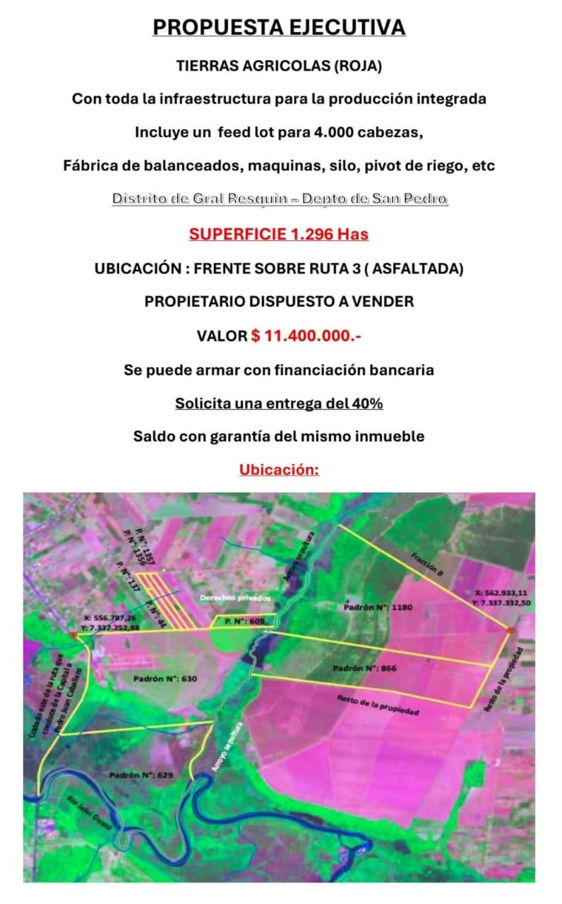 Campo en venta de 1296 hect ubicado en General Resquin – Paraguay